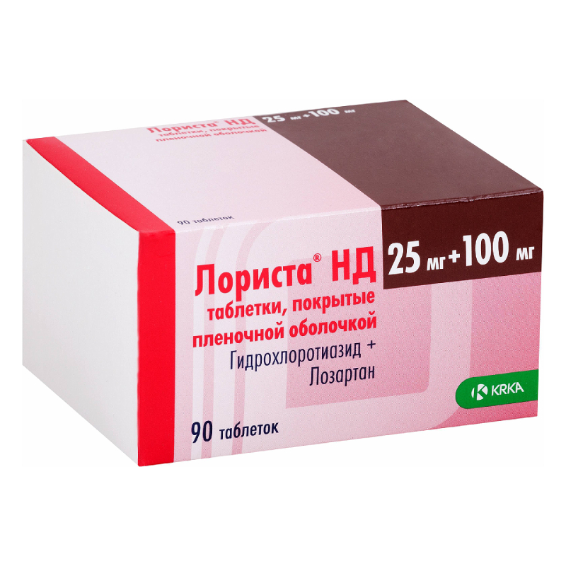 Лориста НД 25 мг+100 мг таблетки покрытые пленочной оболочкой 90 шт