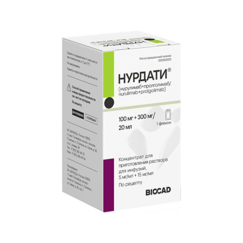 Нурдати 5 мг/мл+15 мг/мл концентрат для приготовления раствора для инфузий 20 мл