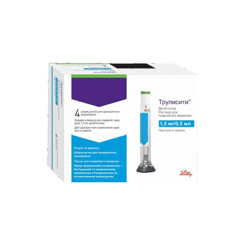 Трулисити раствор для подкожного введения шприц 1,5 мг/0,5 мл шприц ручной0,5 мл 4 шт