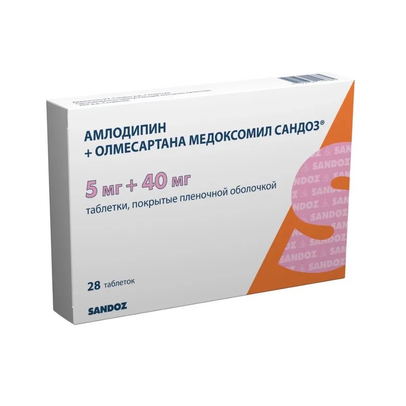 Амлодипин+Олмесартана медоксомил Сандоз 5 мг+40 мг таблетки покрытые пленочной оболочкой 28 шт