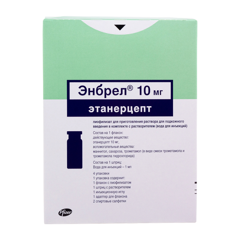 - 1 флакон, содержащий лиофилизат препарата Энбрел;