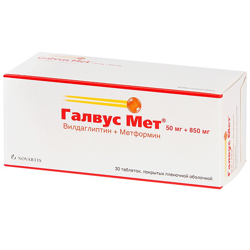Галвус Мет 50 мг+1000 мг таблетки покрытые пленочной оболочкой 30 шт