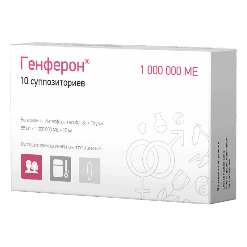 Генферон суппозитории вагинальный и ректальный упаковка контурная ячейковая 1000000МЕ 10 шт