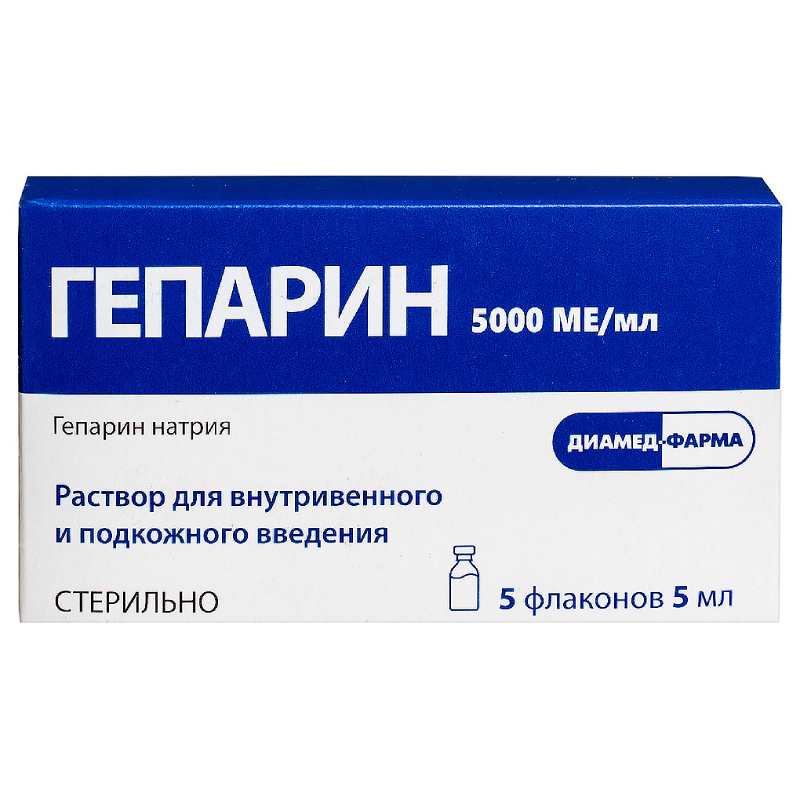 Гепарин 5000 МЕ/мл раствор для внутривенного и подкожного введения 5 мл 5 шт ДИАМЕД-фарма