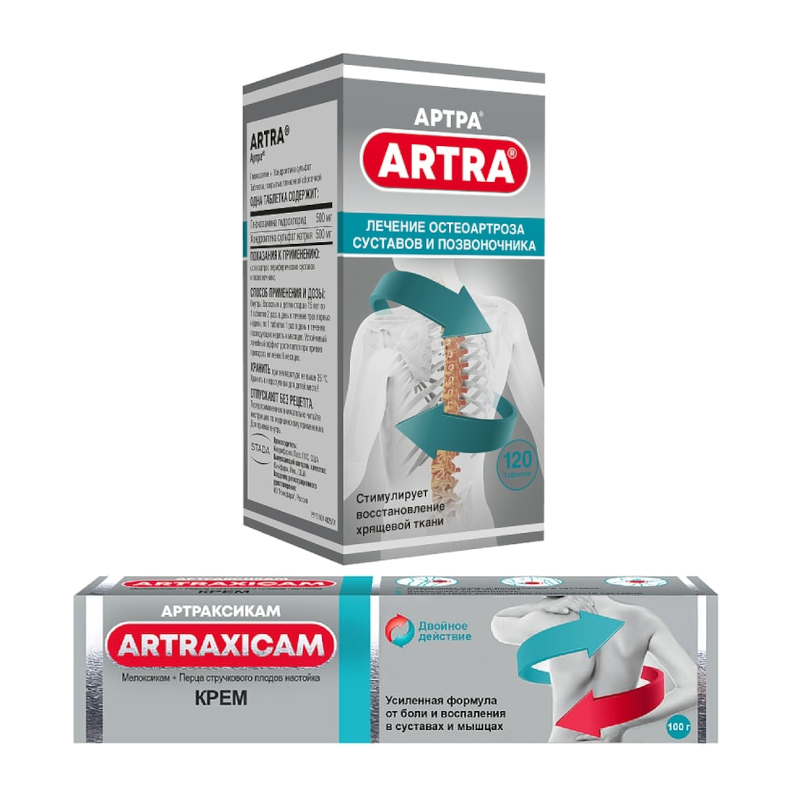 Набор Артраксикам 30 мг/г+100 мг/г крем для наружного применения 100 г + Артра 500 мг+500 мг таблетки покрытые пленочной оболочкой 120 шт