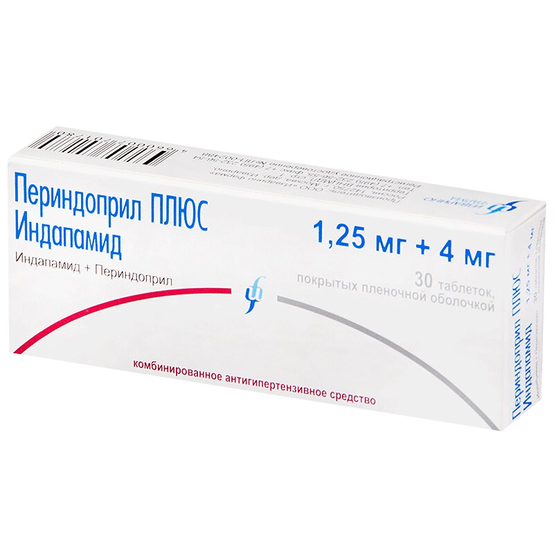 Периндоприл ПЛЮС Индапамид 1,25 мг+4 мг таблетки покрытые пленочной оболочкой 30 шт