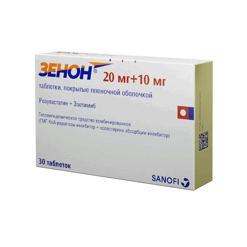 ХС поступает в плазму крови в результате всасывания в кишечнике и эндогенного синтеза. Препарат Зенон® содержит эзетимиб и розувастатин, два гиполипидемических компонента, дополняющих друг друга по механизму действия. Комбинация розувастатин + эзетимиб снижает повышенную концентрацию общего холестерина (ОХС) в плазме крови, холестерина липопротеинов низкой плотности (ХС-ЛПНП), аполипопротеина В (Апо-B), триглицеридов (ТГ) и холестерина липопротеинов невысокой плотности (ХС-неЛПВП, рассчитывается как разность между концентрацией ОХС и концентрацией ХС-ЛПНП) и повышает концентрацию в плазме крови холестерина липопротеинов высокой плотности (ХС-ЛПВП) путем двойного ингибирования, как абсорбции, так и синтеза ХС.