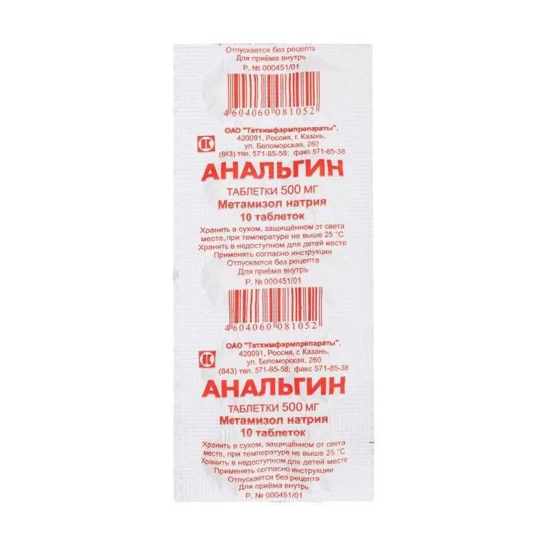 Анальгин 500 мг таблетки 10 шт Татхимфармпрепараты