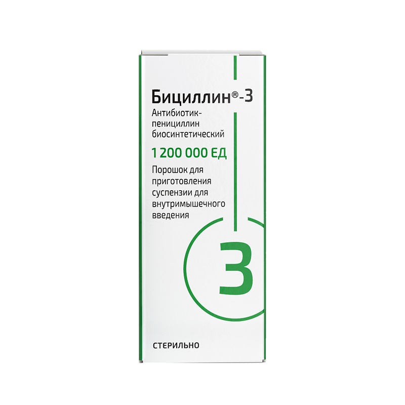 Бициллин-3 1200000 ЕД порошок для приготовления суспензии для внутримышечного введения 1 шт