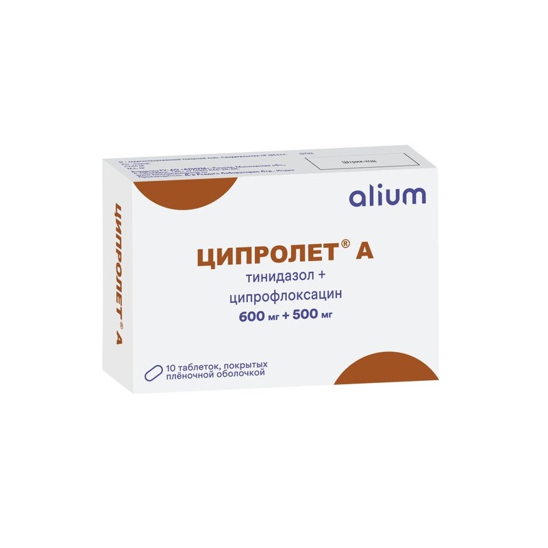 Ципролет А 600 мг+500 мг таблетки покрытые пленочной оболочкой 10 шт