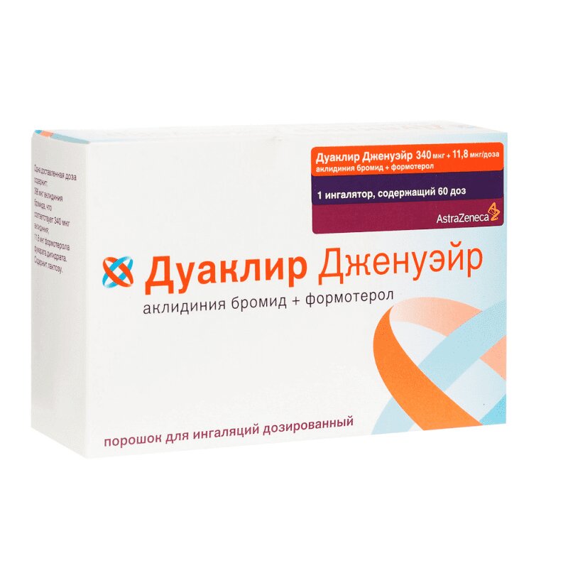 Инструкция по применению Дуаклир Дженуэйр 340 мкг/доза+11,8 мкг/доза порошок для ингаляций 60 доз