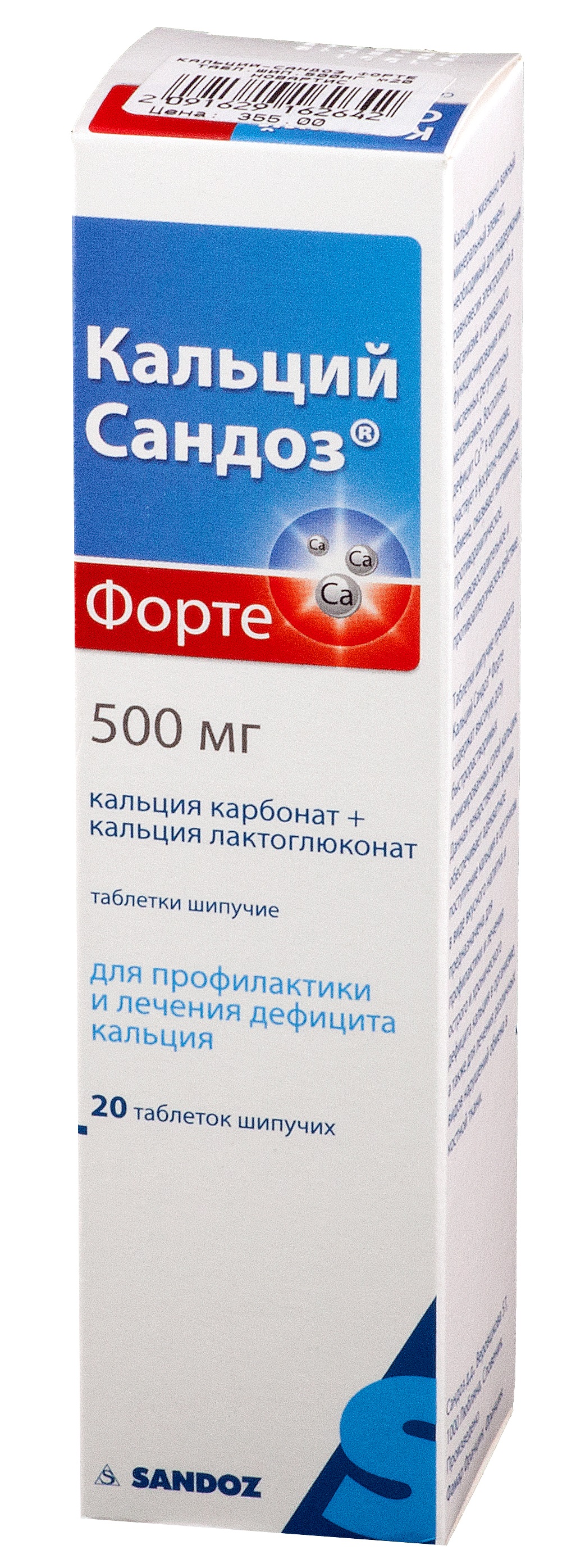 Инструкция по применению Кальций-Сандоз Форте 500 мг таблетки шипучие 20 шт