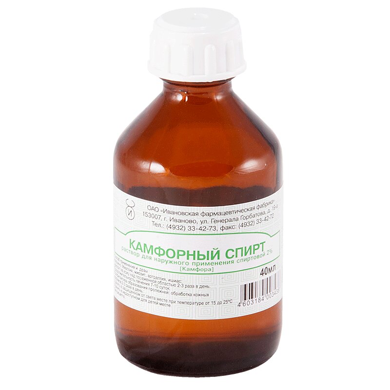Камфорный спирт 2% раствор спиртовой для наружного применения 40 мл 1 шт Ивановская фармацевтическая фабрика