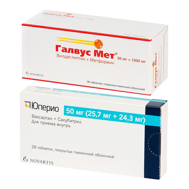 Набор Галвус Мет 50 мг+1000 мг таблетки покрытые пленочной оболочкой 30 шт + Юперио 50 мг таблетки покрытые пленочной оболочкой 28 шт