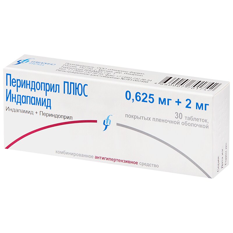 Периндоприл ПЛЮС Индапамид 0,625 мг+2 мг таблетки покрытые пленочной оболочкой 30 шт