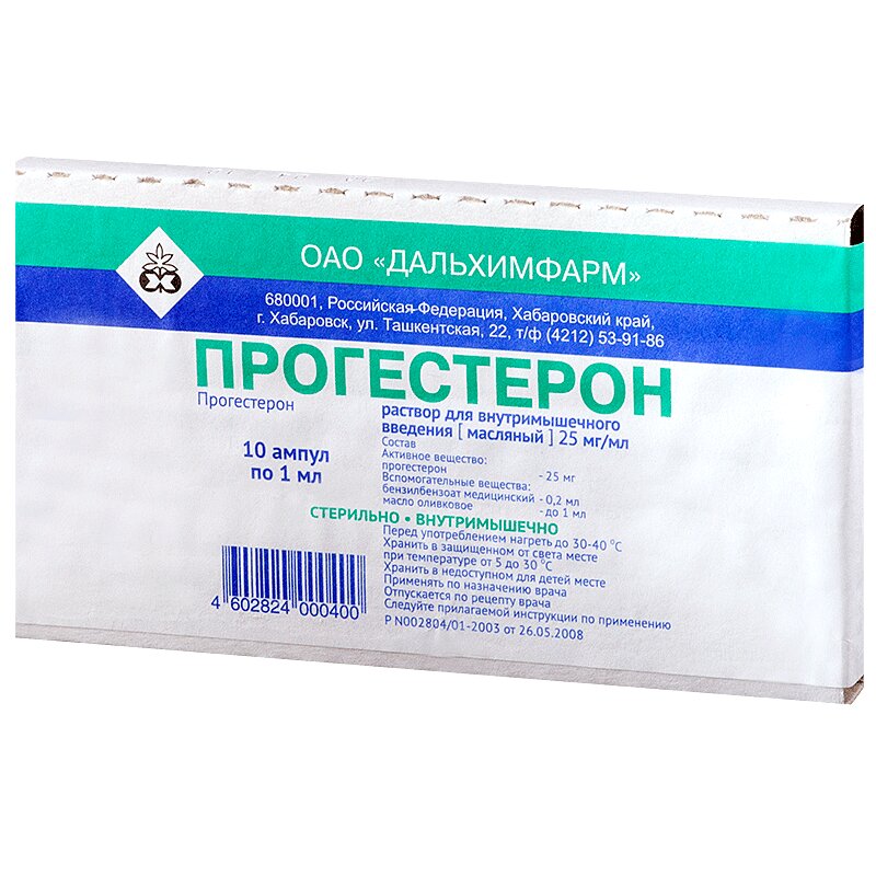 Прогестерон 25 мг/мл раствор маслянный для внутримышечного введения ампула 1 мл 10 шт