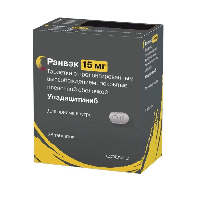 Селективный обратимый ингибитор JAK1. Янус-киназы (JAK) являются важными внутриклеточными ферментами, которые участвуют в передаче сигналов цитокинов или факторов роста, а также вовлечены в широкий спектр клеточных процессов, включая воспалительные реакции, кроветворение и иммунный надзор.