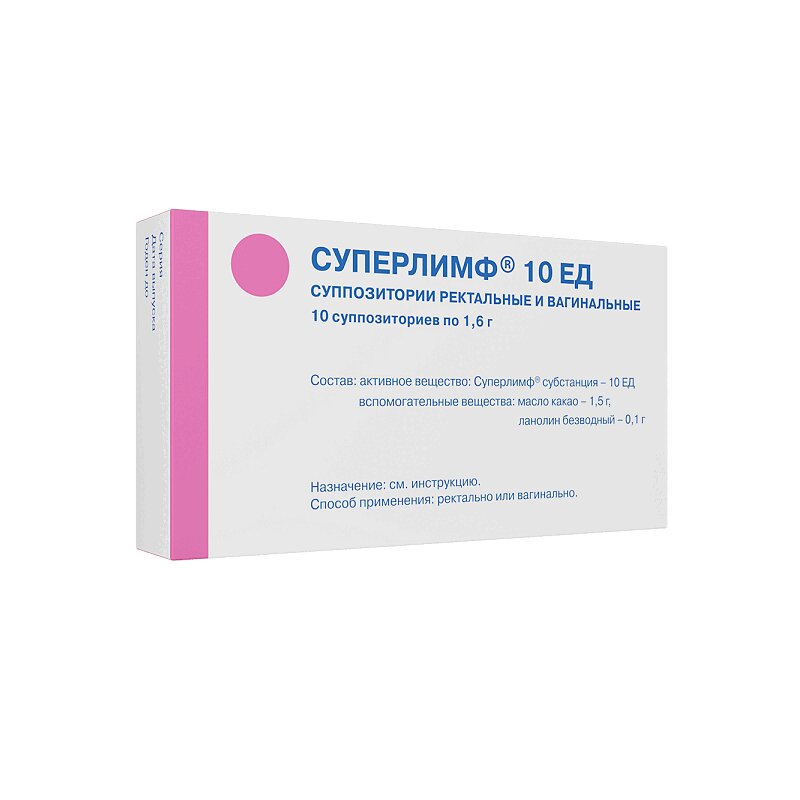 Инструкция по применению Суперлимф 10 ЕД суппозитории вагинальные и ректальные 10 шт
