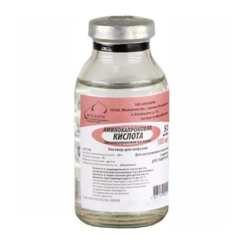 Инструкция по применению Аминокапроновая кислота 50 мг/мл раствор для инфузий 100 мл 36 шт