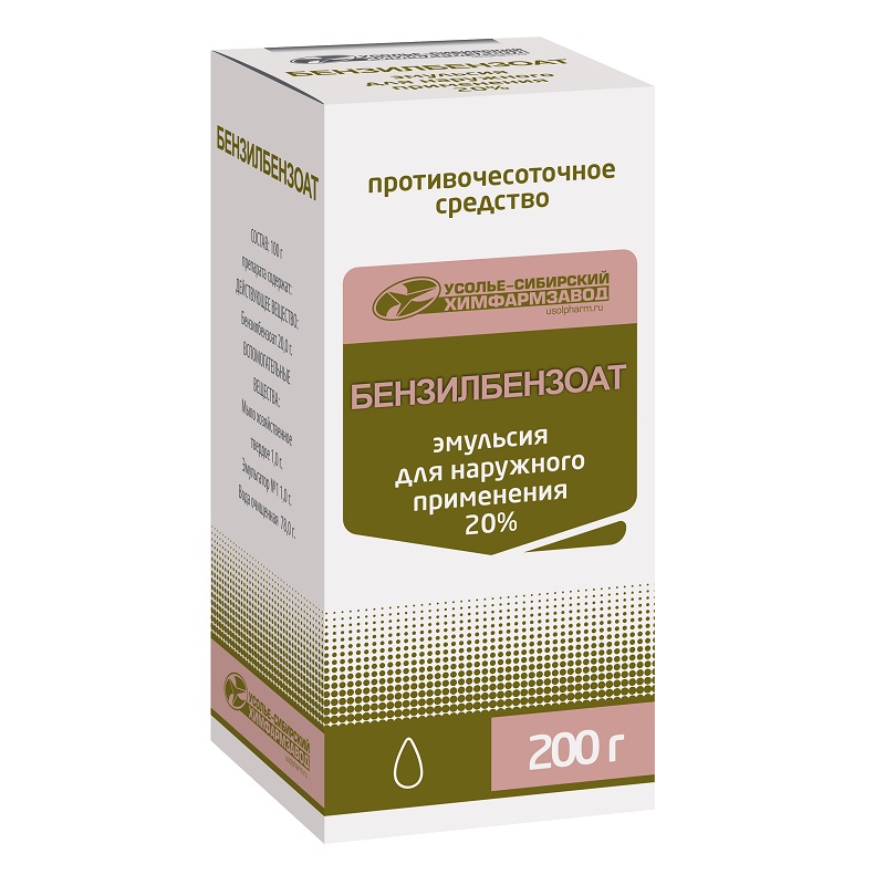 Бензилбензоат 20% эмульсия для наружного применения 200 г 1 шт Усолье-сибирский химфармзавод