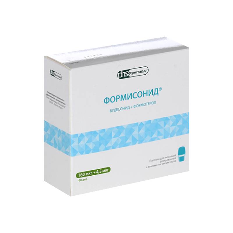 Инструкция по применению Формисонид 160 мкг+4,5 мкг порошок для ингаляций 60 шт + ингалятор 1 шт