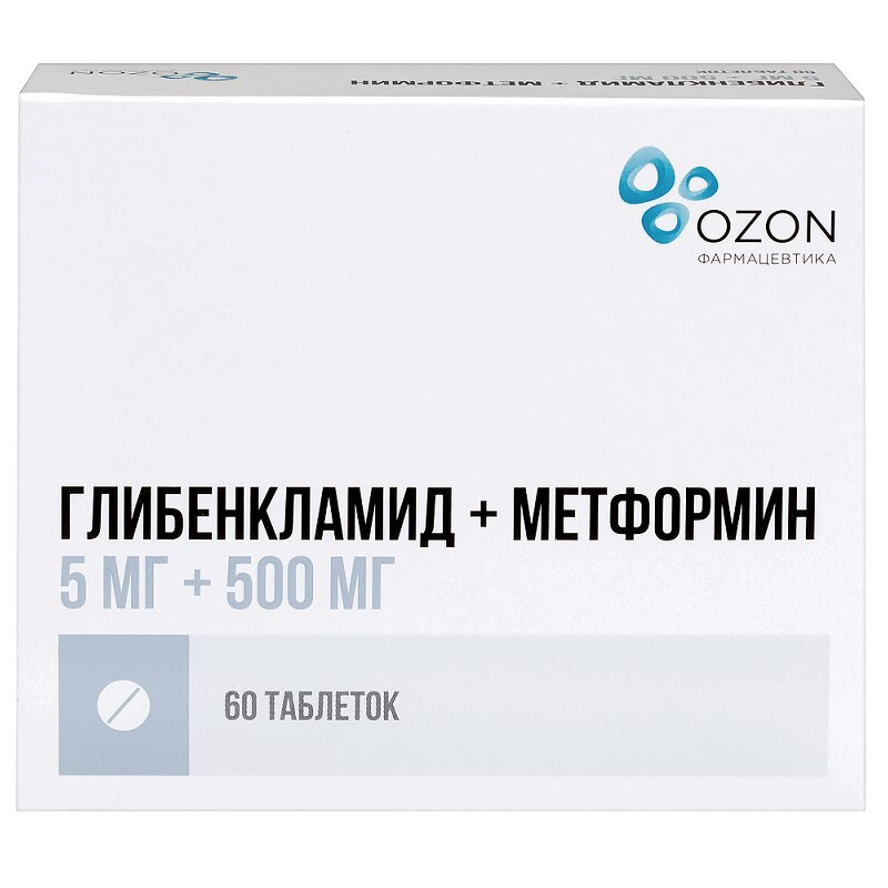 Глибенкламид+Метформин таблетки покрытые пленочной оболочкой упаковка контурная 5 мг+500 мг 60 шт