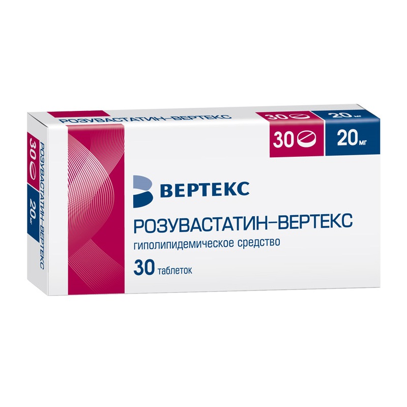 Розувастатин-ВЕРТЕКС 20 мг таблетки покрытые пленочной оболочкой 30 шт