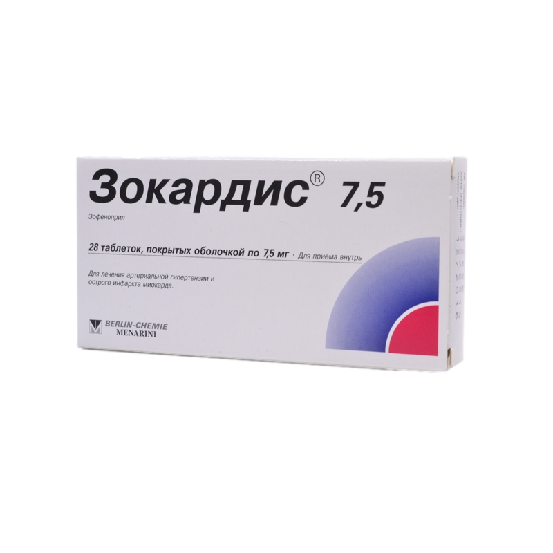 Перед назначением ингибиторов АПФ требуется коррекция водно-электролитного обмена и отмена проводимой терапии диуретиками за 2-3 дня до начала приема ингибитора АПФ. В этом случае начальная доза Зокардиса составляет 15 мг/сут. Если отмена диуретиков и нормализация водно-электролитного баланса невозможна, то начальная доза Зокардиса должна составлять 7.5 мг/сут.