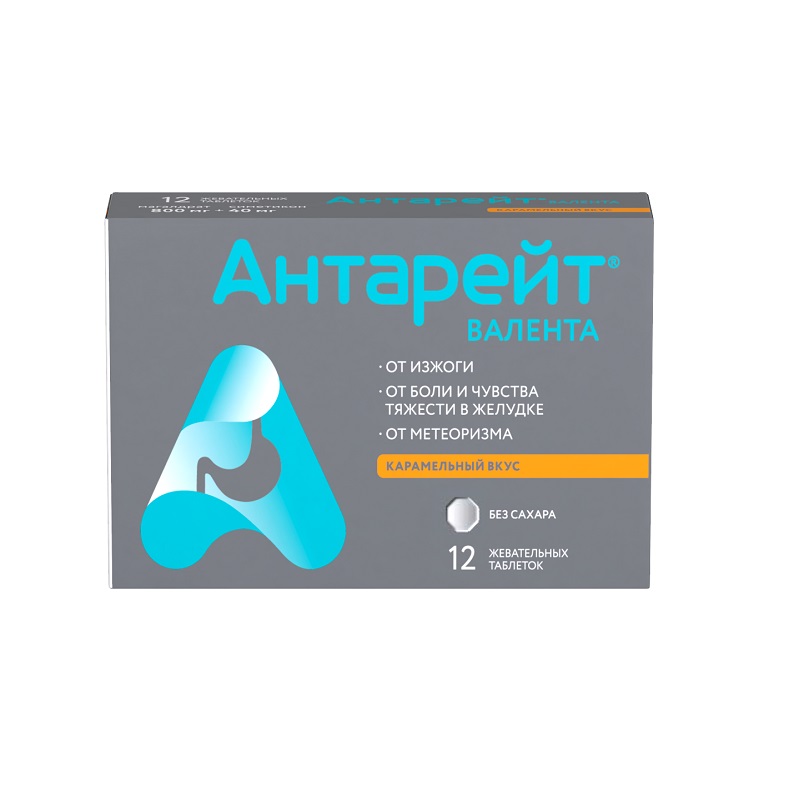 Инструкция по применению Антарейт Валента 800 мг+40 мг таблетки жевательные Карамель 12 шт