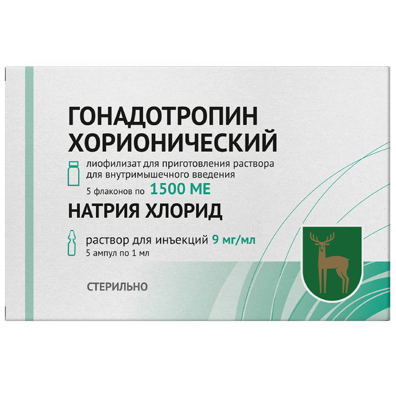 Гонадотропин хорионический 1500 МЕ лиофилизат для приготовления раствора для внутримышечного введения 5 шт + растворитель