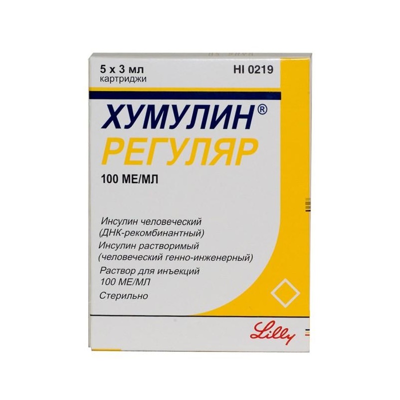 Хумулин Регуляр 100 МЕ/мл раствор для внутривенного и подкожного введения картридж 3 мл 5 шт
