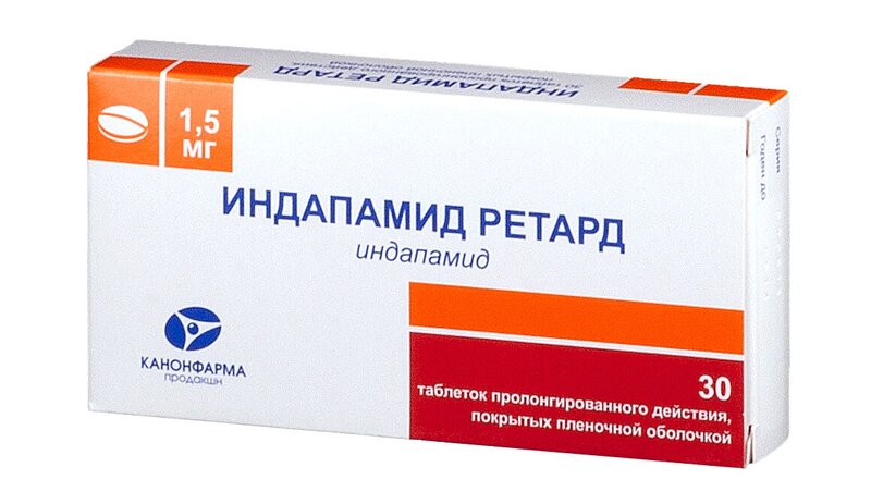 Индапамид Ретард 1,5 мг таблетки покрытые пленочной оболочкой с пролонгированным высвобождением 30 шт Канонфарма
