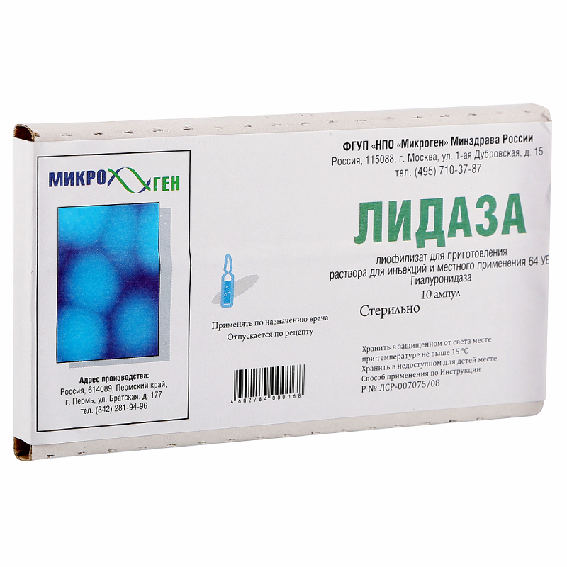 Лидаза 1280 МЕ лиофилизат для приготовления раствора для инъекций и местного применения 10 шт Микроген