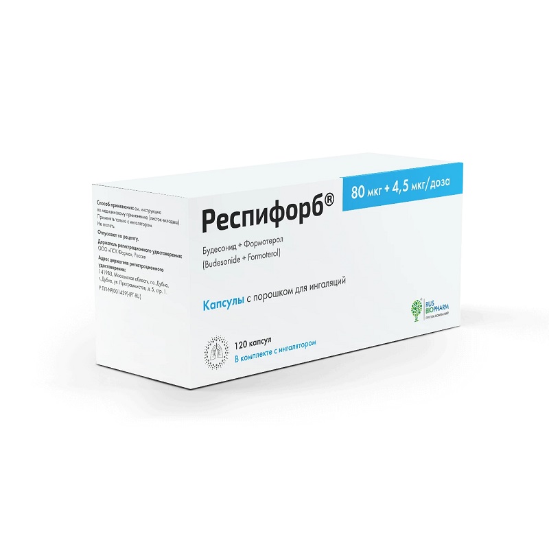Респифорб капсулы с порошком для ингаляций упаковка контурная 80 мкг+4,5 мкг/доза 120+ штустройство для ингаляций