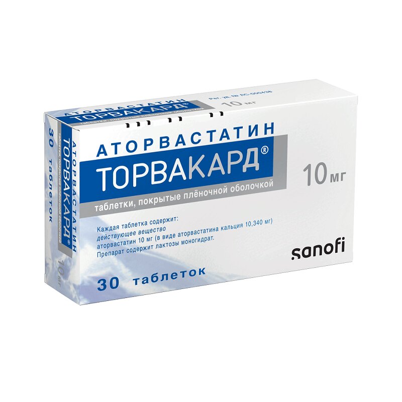 Торвакард таблетки покрытые пленочной оболочкой блистер 10 мг 30 шт