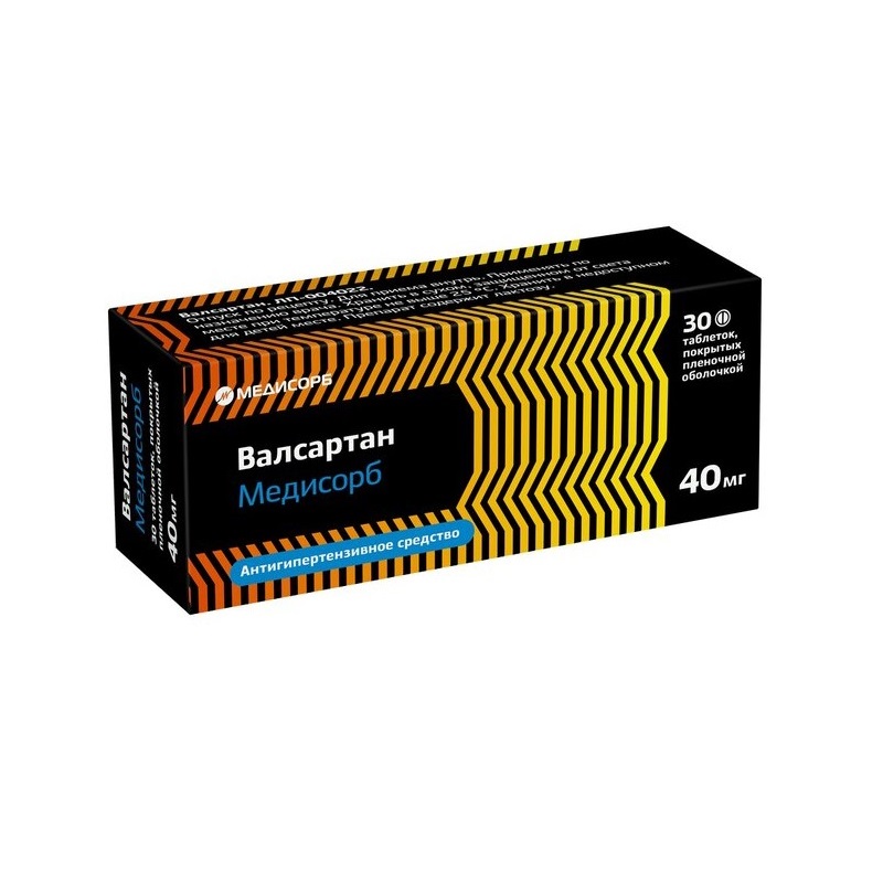 Валсартан Медисорб 40 мг таблетки покрытые пленочной оболочкой 30 шт